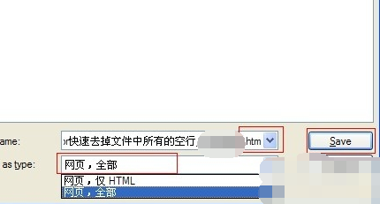 在弹出来的“另存为”窗口中, “保存类型”中选择“网页,全部”格式。
