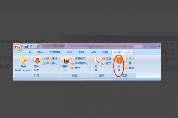 1、首先我们打开电脑里的Word软件,切换到noteexpress插件,在noteexpress插件中,点击设置按钮。