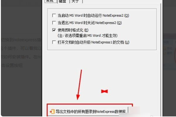 2、然后我们打开设置对话框,点击下面的“将Word中的所有题录导入到ne中”。