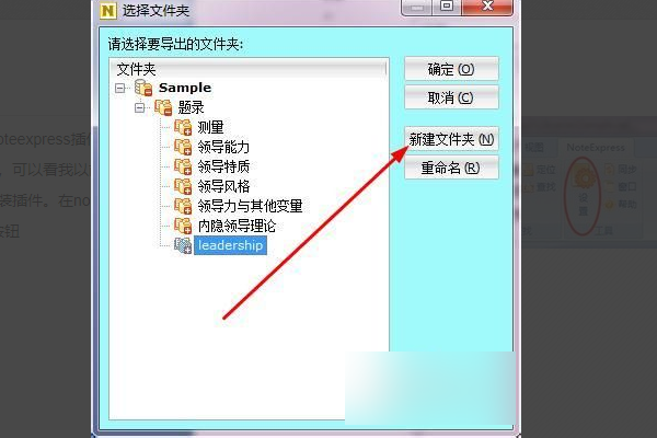 3、然后你会看到打开一个对话框,让你选择题录导入到哪个文件夹,我们可以导入到已有的文件夹中,也可以新建一个文件夹,点击新建按钮。