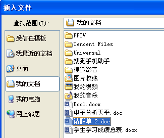 2、弹出插入文件对话框,选择需要插入的文件即可,如图所示。