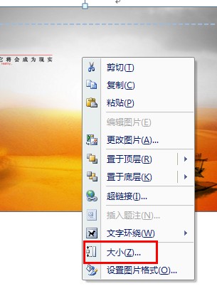 2、双击页眉->点选背景图片->右键->大小;