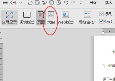 2、在“页面布局”中选择大纲视图。