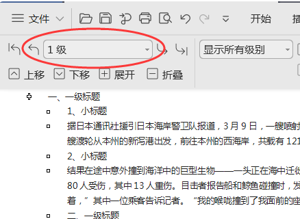 1.选中文章中的所有一级标题;