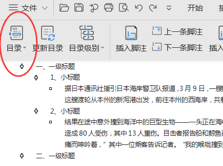 步骤二、自动生成目录及更新目录