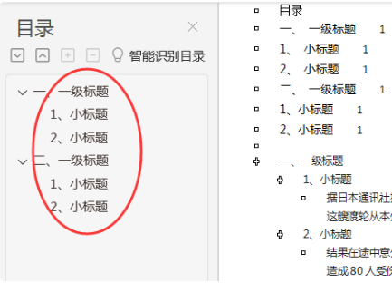9、文档会自动检索标题并列出。
