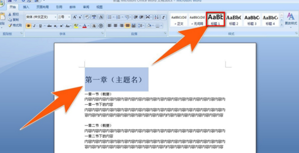2、先选中第一级,再点击“标题1”,即加上目录中第1级的标题样式。