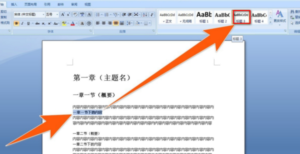 仿照步骤1、2设置二、三级标题格式为标题2、标题3。