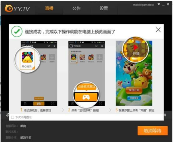 手机上不能直接使用YY直播来直播手游,具体使用步骤如下