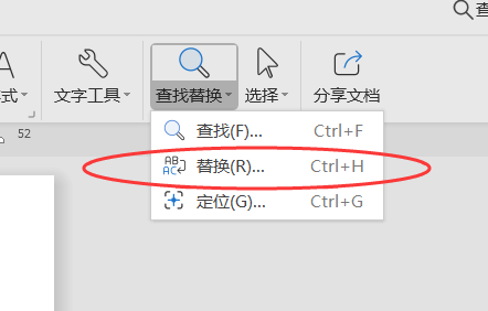 2、点击页面商法工具栏中的“查找替换”点击“替换”。