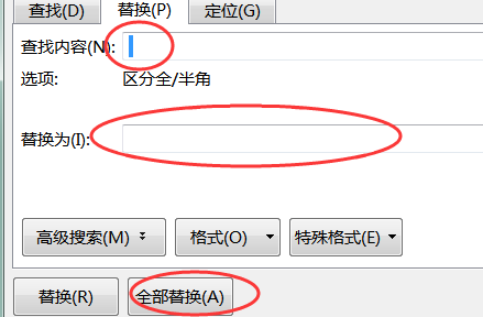 使“替换为”旁的输入框保持为空!就是里面什么也没有,用空白来代替空格,即:把空格删除了。