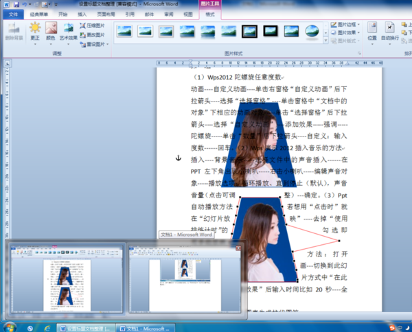(3)穿越型环绕:文字可以穿越不规则图片的空白区域环绕图片;