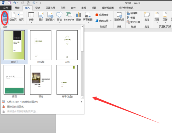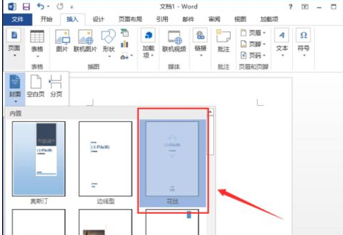 在word文档中插入空白封面,首先选择插入封面选项,然后将多余的图例删除即可。具体方法如下: