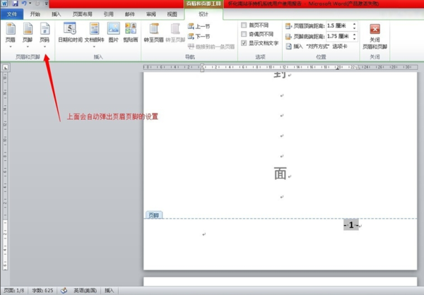 2、上面会弹出“页眉”“页脚”“页码”三个选项