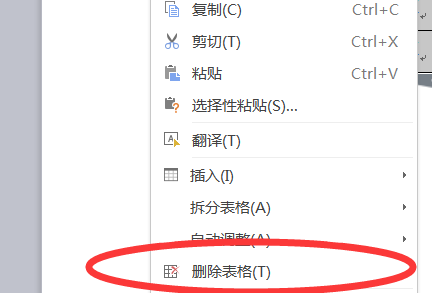 3、然后在选中的表格上方点击鼠标右键,在弹出的选项中点击“删除表格”选项