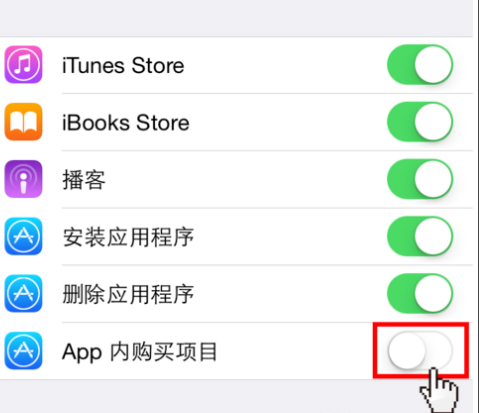 也可以在设置内,将App内购买项目关闭,关闭方法如下: