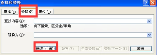 3、在“查找和替换”对话框中,把鼠标放在“查找内容”后面的输入框中,点击下方的“更多”。
