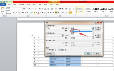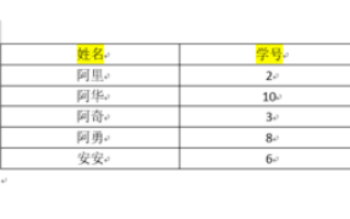 word表格里数字怎么按大小排序