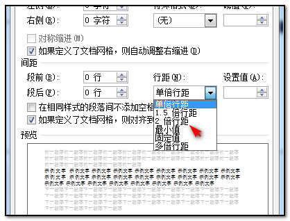 4、点击行距选项以后,在弹出的选择框中行距里选择2倍行距;
