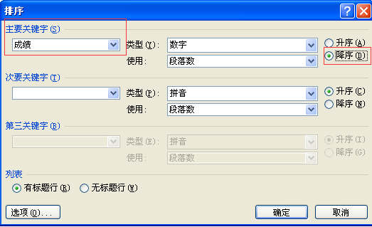 怎么用WORD做成绩表格并排序?
