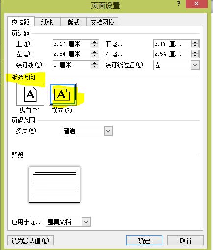word 打印纸张横了,怎么做?