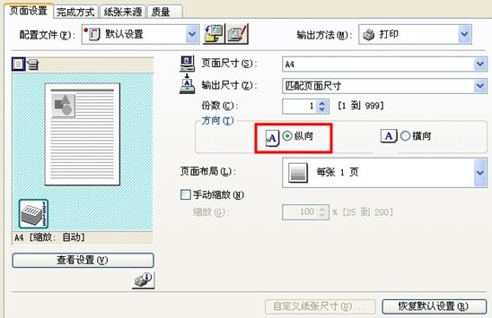 设定打印机的打印方向: