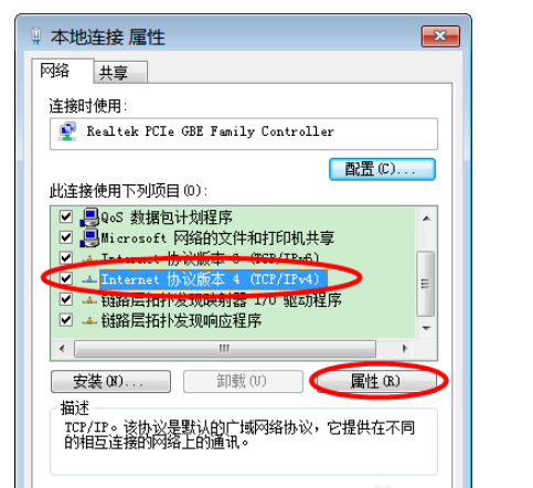 在网络适配器属性对话框中,选择IPv4协议,点击"属性"。