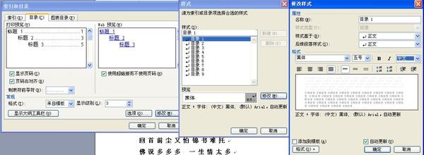 在“视图”打开索引和目录,选“目录”选项卡,点击"修改",在"样式"里面选"修改",打开"修改样式"后,就看到里的"格式"选项.对应的"中文"时,前面字体选“黑体”,对应的“西文”时,前面字体也选黑体,最后确定就字体一样了。