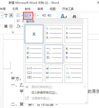 现在Word 2013的编号库里已经有了这种编号格式,直接选择即可。