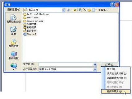 1、利用word2002/2003的“打开并修复”功能来修复文挡。
