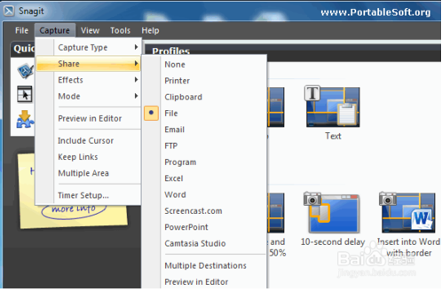 市面上的截屏软件有很多,比如FastStone Capture、PicPick都是很优秀的产品。我个人习惯用SnagIt,所以在这里就以它为例进行介绍。打开SnagIt主界面,首先在Capture-Share中选择Files,将截屏输出到文件。