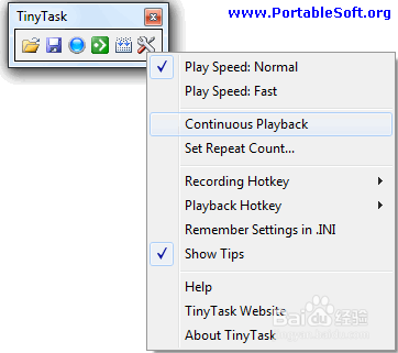 在TinyTask中单击Options,选择Continuous Playback,或者在Set Repeat Count中指定具体的回放次数,退出任何可能干扰自动操作的程序(QQ、360安全卫士、有道词典等等),按下 Ctrl+Shift+Alt+P 开始回放,然后电脑就变成你的机器人了。