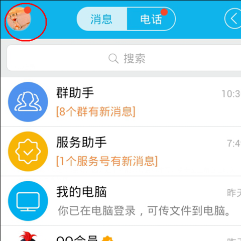 2.在QQ主页面中找到左上角本人的QQ头像,点击自己的QQ头像进入至QQ个人设置主页面中。