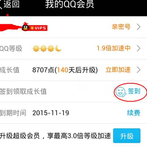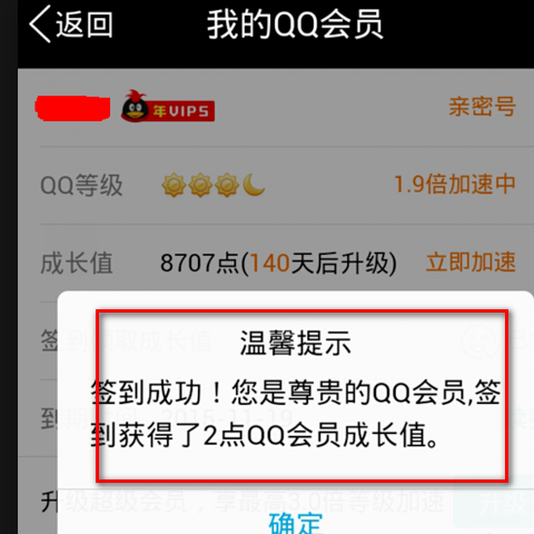 5.QQ会员签到完成后即可增加成长值,会员等级越高成长值越高。