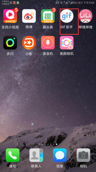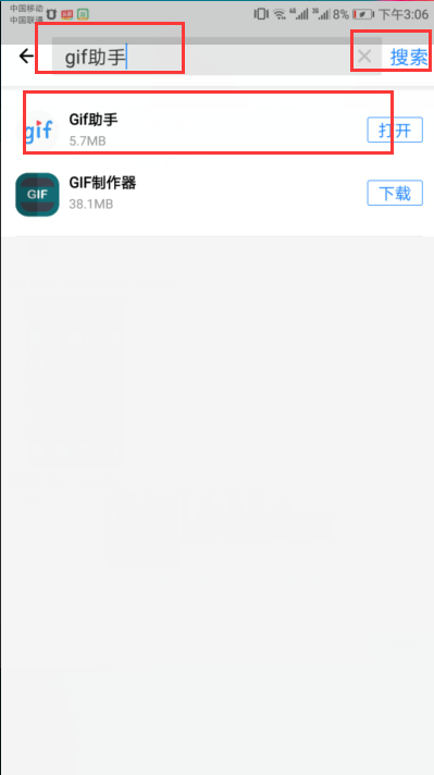 2、在应用市场的搜索栏中输入“gif助手”,点击“搜索”按钮,进行软件的下载和安装