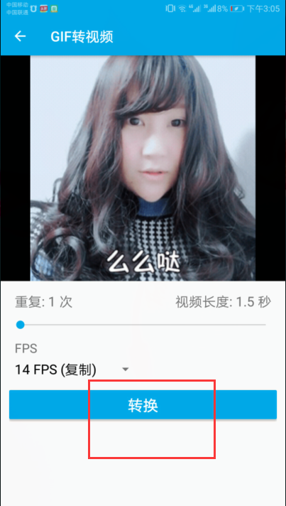 7、在“GIF转视频”的界面中,点击“转换”按钮