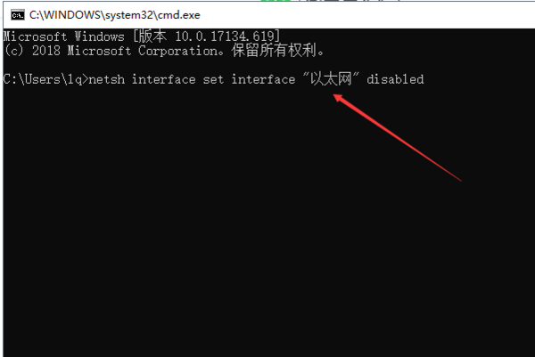 可以用netsh interface set interface "你网卡的名字" disabled 命令禁用网卡,netsh interface set interface "你网卡的名字" enable开启网卡,具体操作如下:
