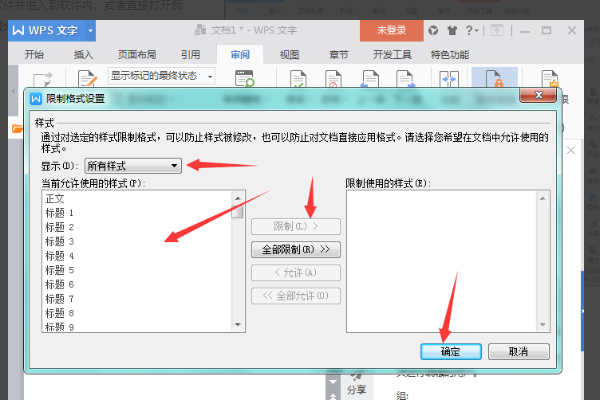 5、限制对选定的样式设置格式中点击设置我们来看都可以设置哪些内容来进行保护,如图所示。