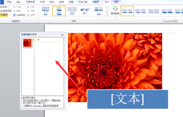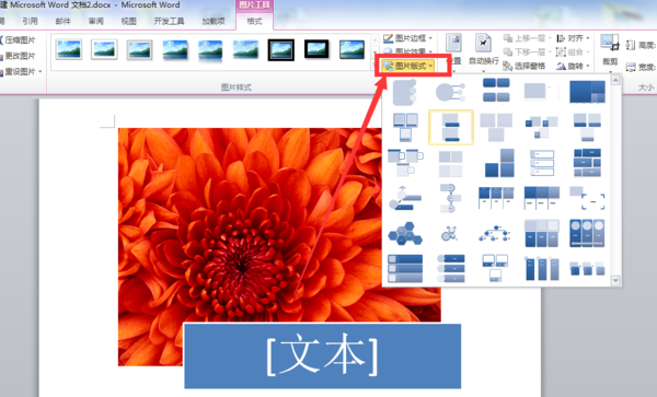 1.插入图片以后,双击图片,在界面上方点击“图片版式”,在展开的窗口上,可以点击选中任意一种的图片文字组合的样式;