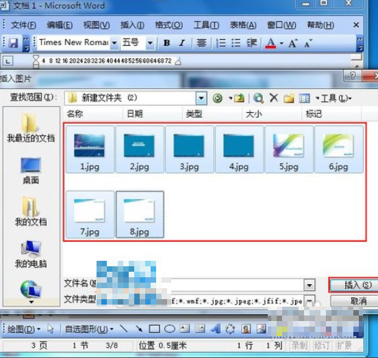 2.在”插入图片“的界面上,点击选中特定的图片后,点击”插入“;