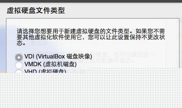 5、选择虚拟机硬盘文件的类型,保持默认即可,即 VDI磁盘映像,点继续。