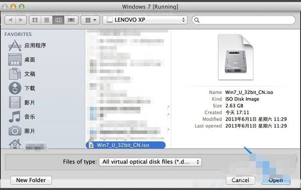 在苹果Mac虚拟机上安装Win7步骤方法: