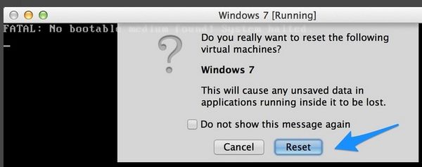 6、随后会提示用户是否确定要重新启动当前虚拟机,点击“Reset”按钮。
