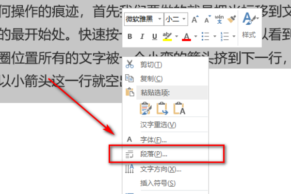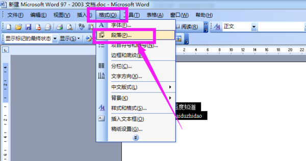打开word文档,选中页面上的文字内容后,点击”格式“,选择”段落“;