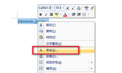 4、另外,还可以在Word中选中文字内容,并右键单击它,在弹出的菜单列表中点击字体的选项。
