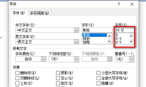 5、最后,在弹出字体的窗口中,同样把字号选择为数字的选项,即可把字号变成相应数字大小的磅值。