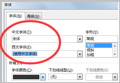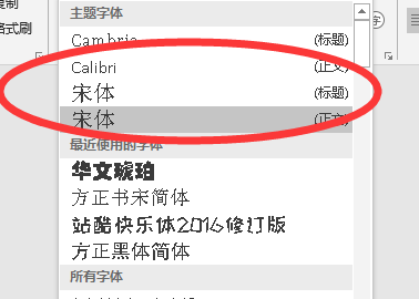 WORD文档中文字体一般用:宋体、黑体、仿宋、微软雅黑;西文字体一般使用:cambria、calibri。