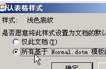 打开Word 2007“默认表格样式”对话框,选中“所有基于Normal.dotm模板的文档”复选框,并单击“确定”按钮。