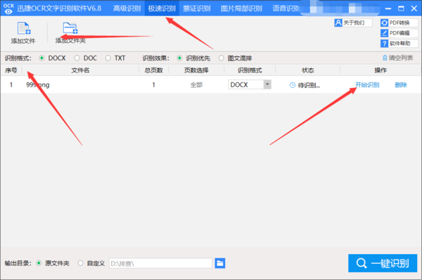 最后,点击操作下面的【开始识别】按钮。