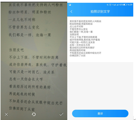 第二步:将手机摄像头对准你写的文字然后拍下照片,点击完成等待几秒就会出现识别结果。
